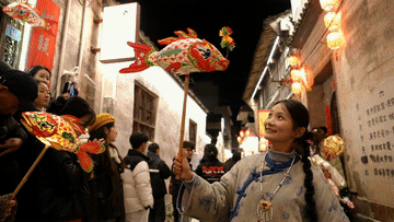 农历正月十五元宵节,民间艺人在湖北省恩施土家族苗族自治州宣恩县人民广场舞火龙(2025年2月12日摄)。新华社发(宋文摄)