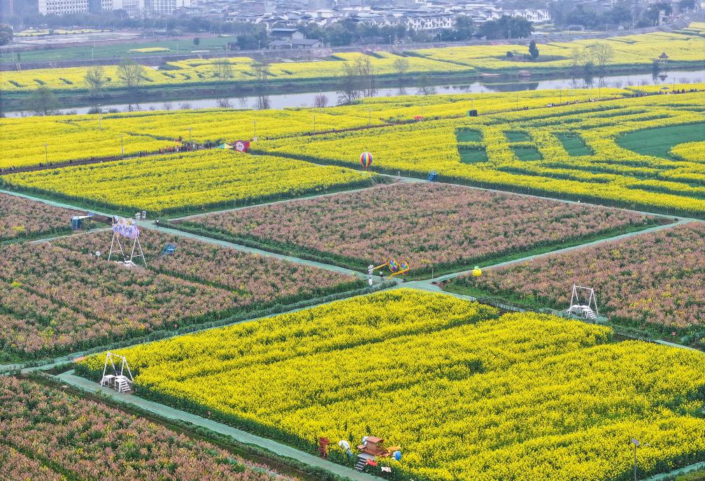 这是3月12日拍摄的重庆潼南崇龛花海景区景象(无人机照片)。