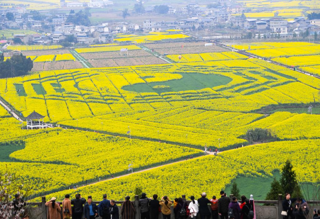 早春时节,重庆市潼南区的32.2万亩油菜花竞相绽放,成为春日里一道靓丽的风景线。