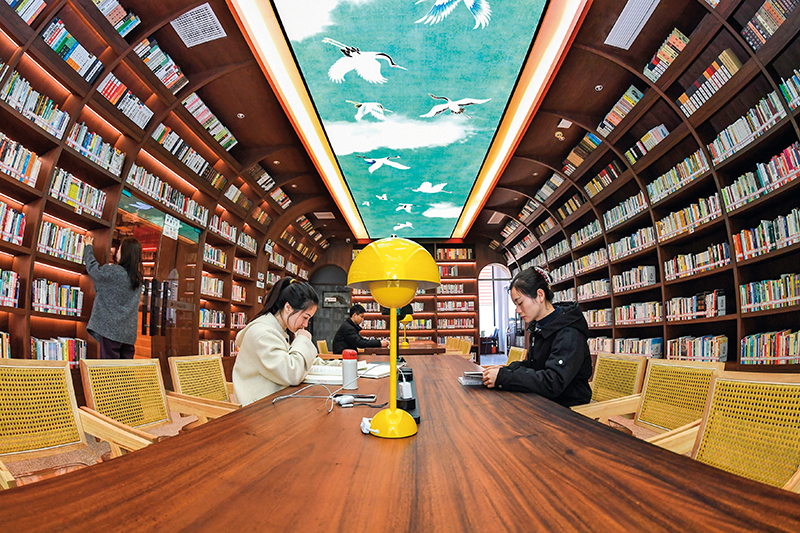 读者在江西省宜春市袁州区珠泉街道狮子山公园城市书房内阅读、学习(2024年1月4日摄) 新华社发(周亮摄)