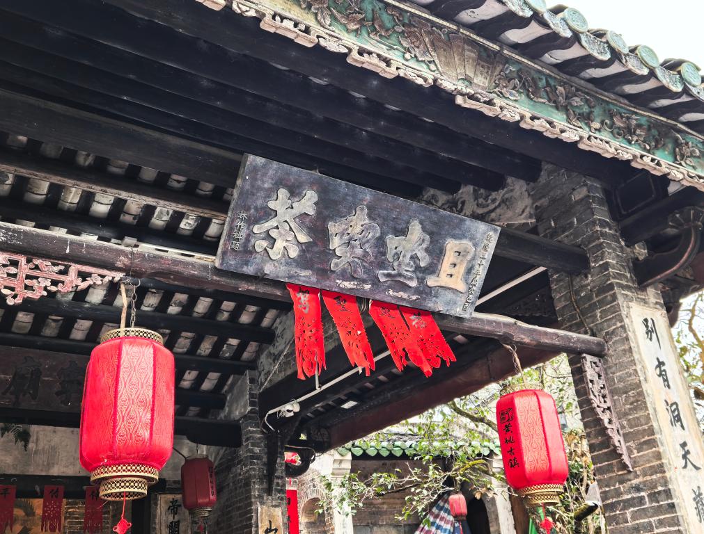在昭平县黄姚古镇的兴宁庙上,悬挂着一块匾额,上面写着“且坐喫茶”。此匾由清乾隆年间当地举人林作楫题写,彼时的昭平人就在此吃茶、吟诗、作画、会友。