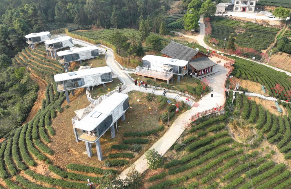 为让游客在此体会“人茶合一”,罗述长设计了6座“悬浮”于茶山之上的太空舱民宿。旅居于此,抬头看日出日落繁星闪烁,脚下是有机茶园郁郁葱葱。“住在这里可以涤荡心灵,整个人都会神清气爽。”体验太空舱的游客劳婉静说。