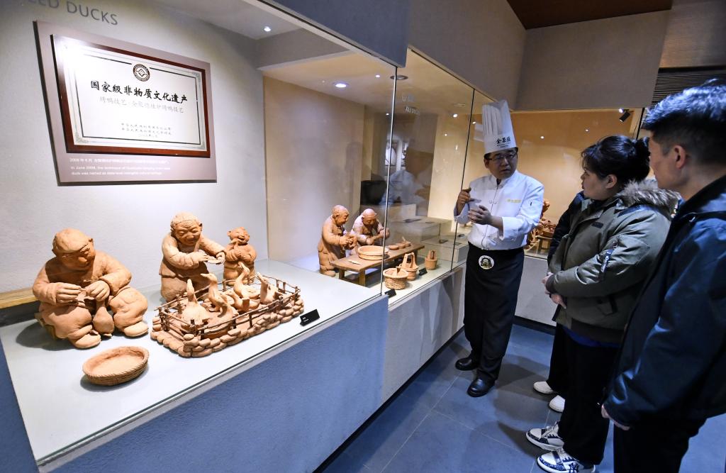 顾客在全聚德烤鸭店和平门总店的全聚德博物馆内参观(3月13日摄)。