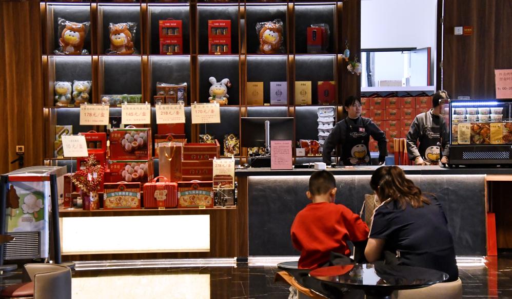 这是全聚德烤鸭店和平门总店大厅内的挂炉烤鸭文创店(3月13日摄)。