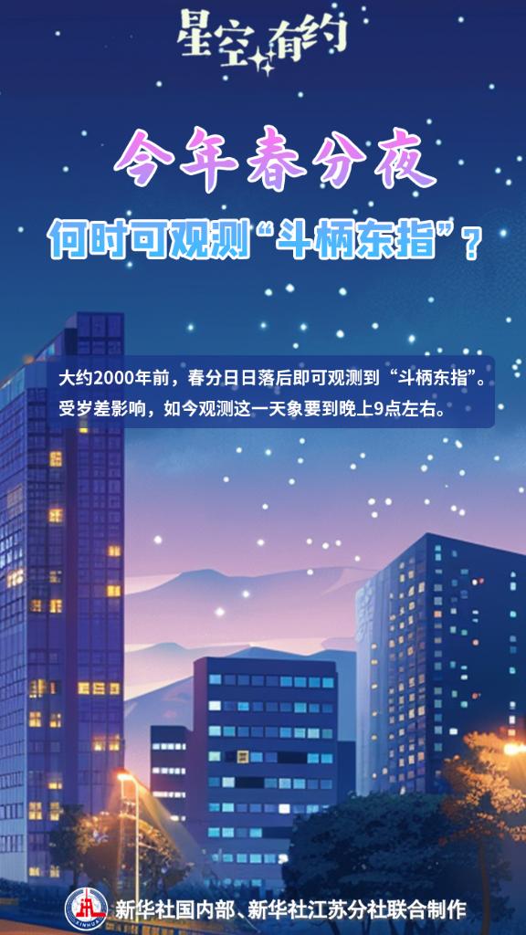 西望冬星余韵,东赏北斗指春。王科超提示,在春分时节,公众可选择晴朗、光污染较少的夜晚,到远离城市的郊外或乡村,寻找夜空中这个神秘的“勺子”,感受“斗转星移”间的千年智慧。