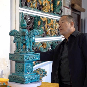 刘开宝,是琉璃烧制技艺国家级非物质文化遗产代表性传承人。20世纪80年代中期,高中毕业的刘开宝怀揣着振兴家乡琉璃工艺的梦想回到村里。2009年,他正式注册成立公司,致力于介休琉璃烧制技艺的传承、保护与创新研发。经过多年的积累和沉淀,他又将目光瞄向了复原失传已久的孔雀蓝釉上面。