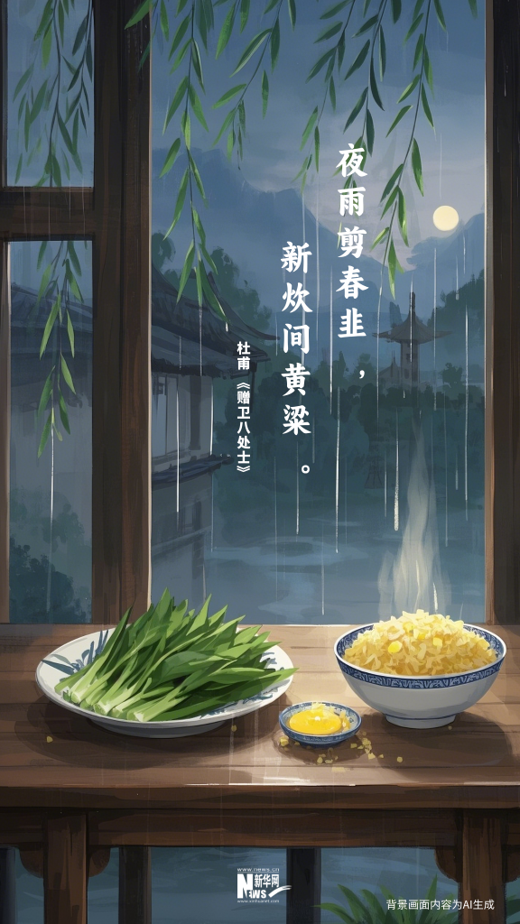 韭菜是春季应时蔬菜。杜甫这首诗中所说的春韭,又称韭黄,指的是韭菜刚刚发芽时的状态。春天万物生发,中医认为春日宜养肝,韭菜正是养肝佳品。春雨过后,韭菜嫩绿如丝,搭配新煮的黄粱米饭,简朴美味。春韭炒鸡蛋、春韭炒肉都非常好吃。