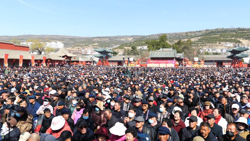 台上唱腔嘹亮,台下掌声不断。坐在马扎上的老汉闭眼摇头,手指随梆子声轻叩膝盖;年轻的后生举着手机拍照录像,一些家长则将孩子举过头顶,眺望台上的演出。