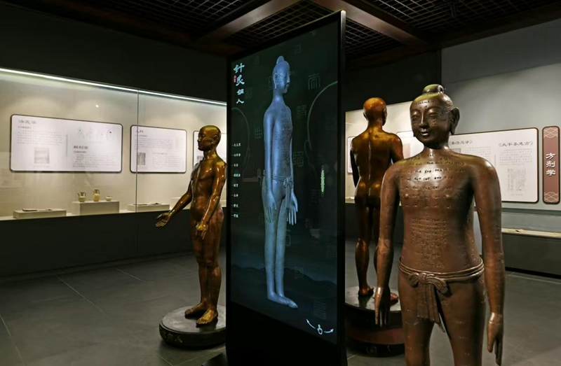 针灸铜人是南京中医药大学江苏省中医药博物馆里的“红人”。在新技术赋能下,这一古代教具有了“进化版”。以馆藏光绪针灸铜人为模型开发的“针灸铜人虚拟三维查询系统”,可以让使用者查看人体经络循行路线,了解穴位功效、腧穴治疗,还能够进行趣味测试,让中医药知识走进日常生活。