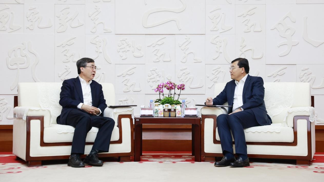 伊利集团董事长、总裁潘刚与中国邮政集团董事长、党组书记刘爱力座谈