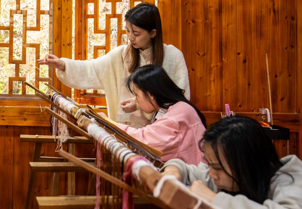 绣庄通过开展非遗进校园、刺绣展演、刺绣体验等活动,让越来越多的人了解桃源刺绣的魅力。肖瑶还不定期举办刺绣培训班,免费向村民传授刺绣技艺,为绣庄周边的妇女、返乡学生提供工作岗位,带动村民在家门口就业。为了给桃源刺绣赢得更广阔的生存空间,肖瑶带领团队开发文创产品,制作耳环、胸针、项链等饰品,把桃源刺绣带入大众视野,用青春焕新家乡非遗。