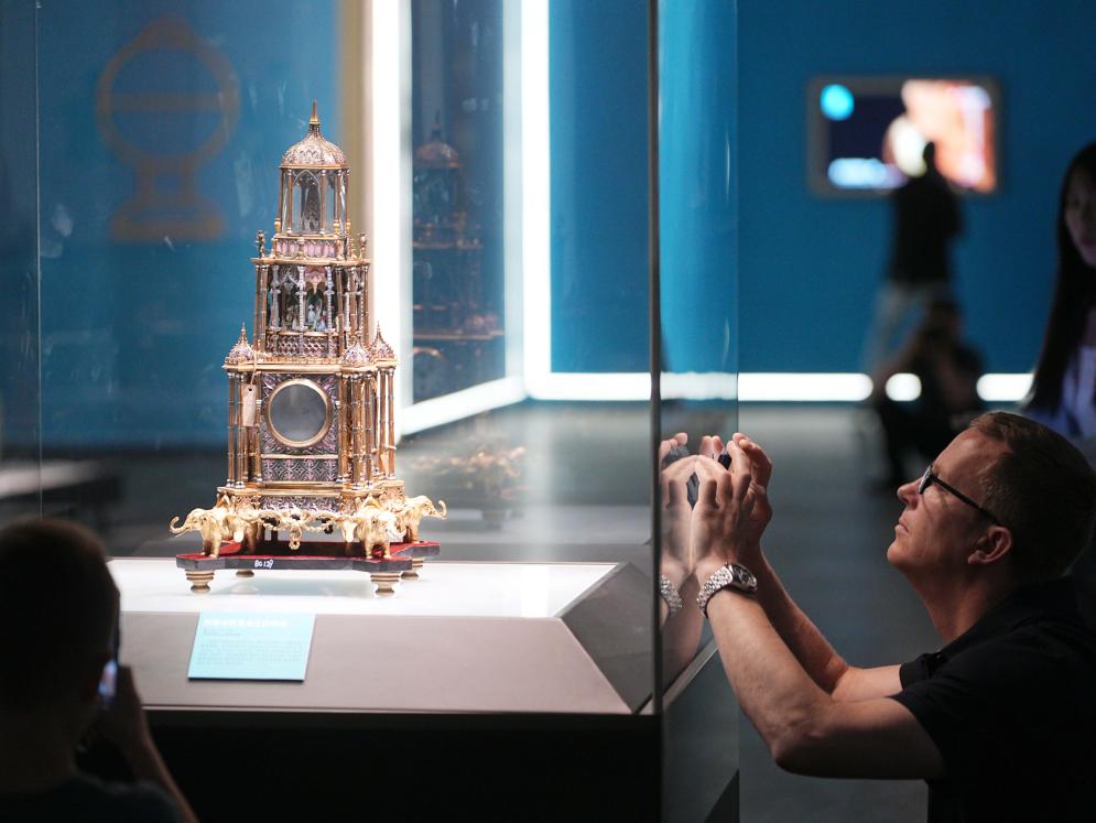 4月24日,观众在河北博物院参观“华彩珍蓝——河北珐琅艺术展”。