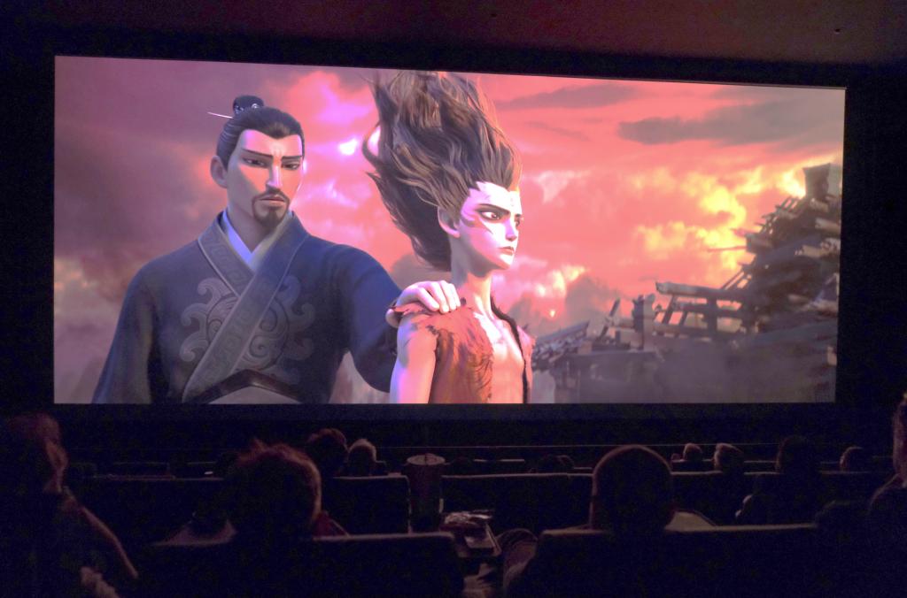 4月24日,观众在丹麦首都哥本哈根的一家影院观看电影《哪吒之魔童闹海》。