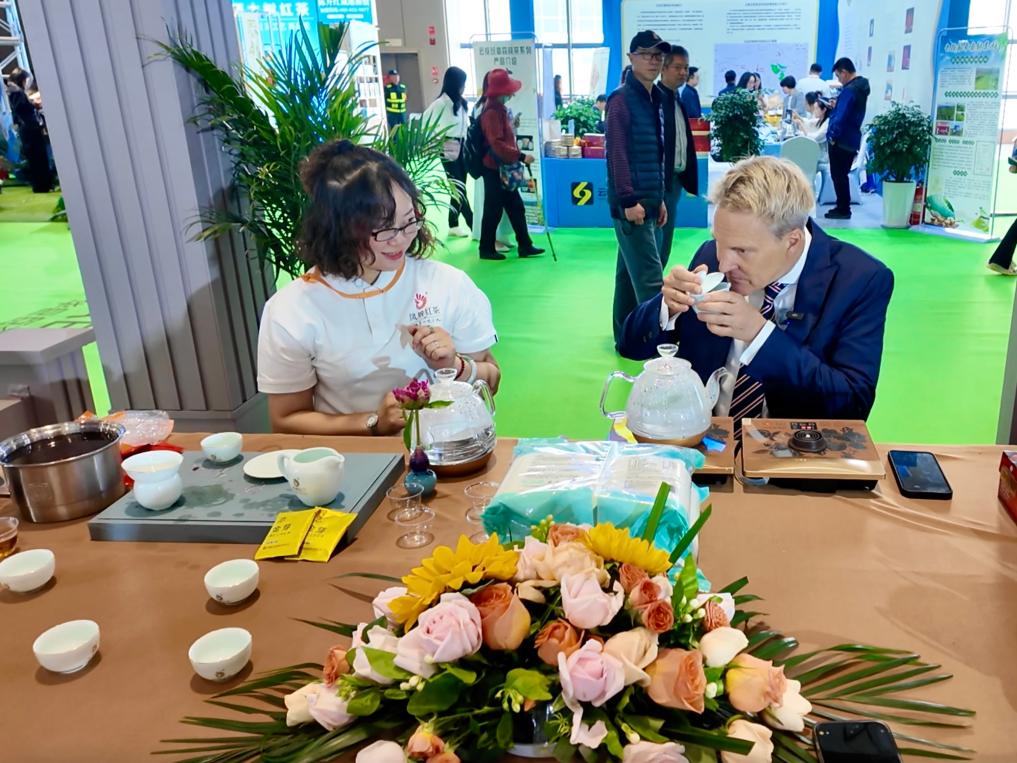 此外,本届云茶博览会首次与英国驻重庆总领事馆合作,共同推出“寻味滇红·国际茶会”展区,向观众介绍云南滇红与英国红茶的历史渊源。来自英国的史蒂夫·霍尔斯在云南旅居,得知云茶博览会上有自己家乡的专区,他专程前来探馆。精致的英伦茶具搭配醇香四溢的滇红热茶,让他有一种“回到故乡”的感觉。