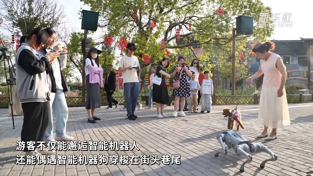游客不仅能邂逅智能机器人,还能偶遇智能机器狗穿梭在街头巷尾,扫码共享无人机航拍极速成片,戴上VR眼镜畅享“穿越时空之旅”。
