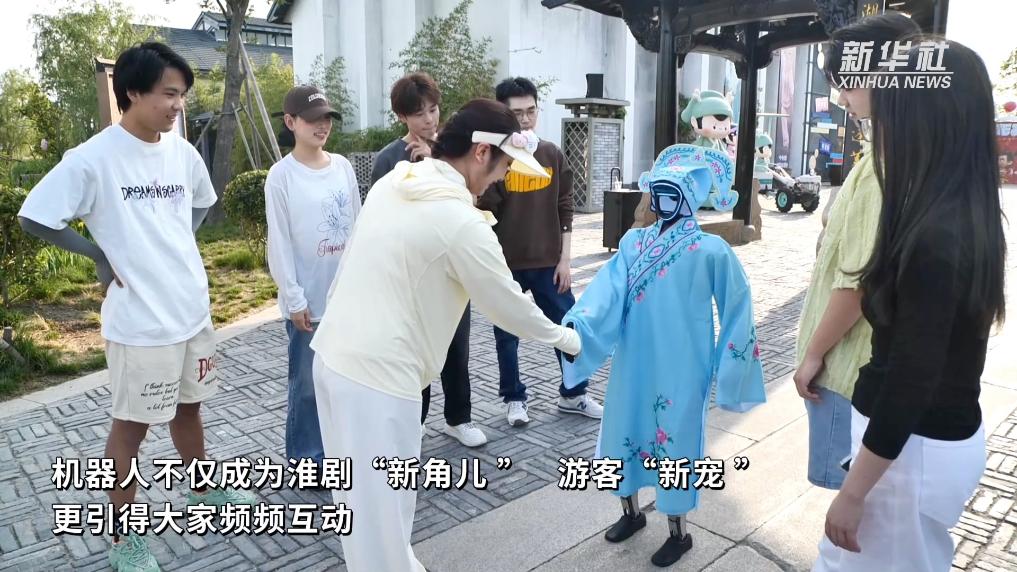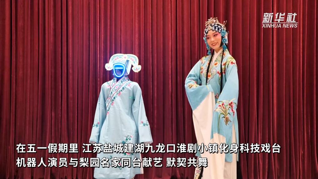 在五一假期里,江苏盐城建湖九龙口淮剧小镇化身科技戏台,机器人演员与梨园名家同台献艺、默契共舞,机器人不仅成为淮剧“新角儿” 、游客“新宠 ”,更引得大家频频互动。