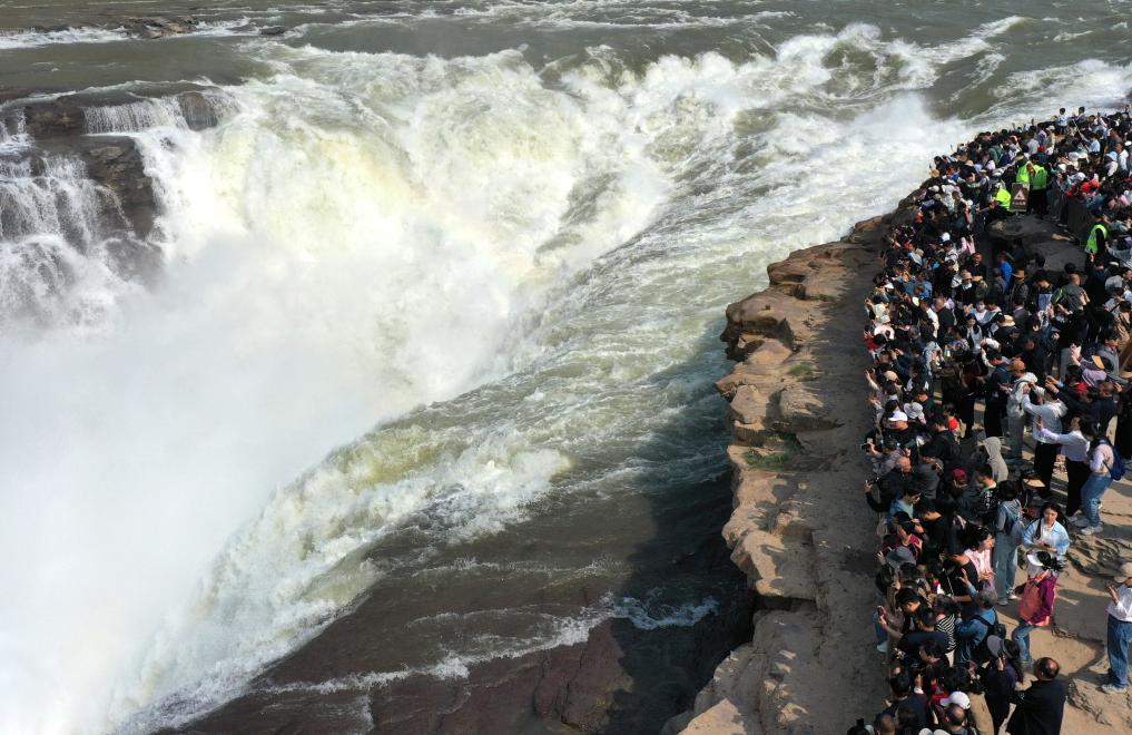 连日来,受上游降水较少影响,位于山西吉县和陕西宜川县交界的黄河壶口瀑布水位回落,呈现出“清流飞瀑”的别样美景。据悉,今年“五一”小长假期间,黄河壶口瀑布景区(山西侧)累计接待游客11.4万人次,同比增加9%,日均接待游客2.28万人次。