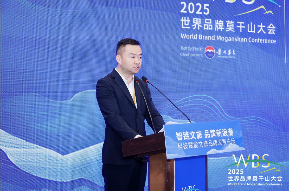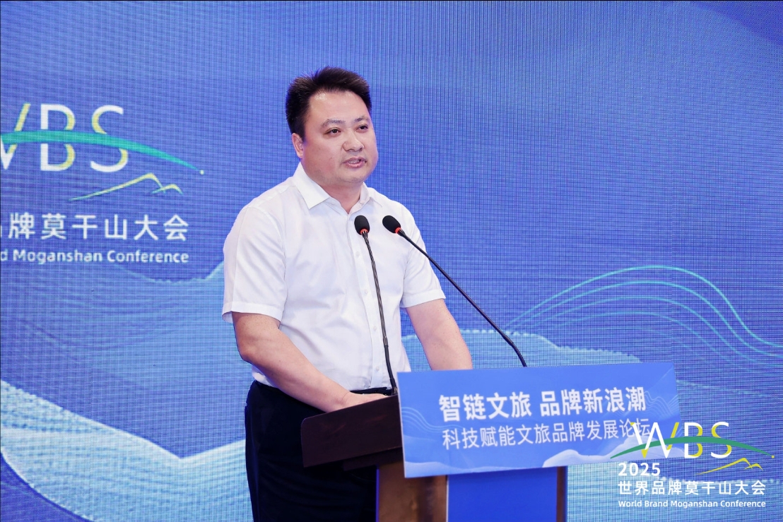 5月9日,科技赋能文旅品牌发展论坛在浙江德清举行,图为新华社湖北分社副社长汪鹏致辞。
