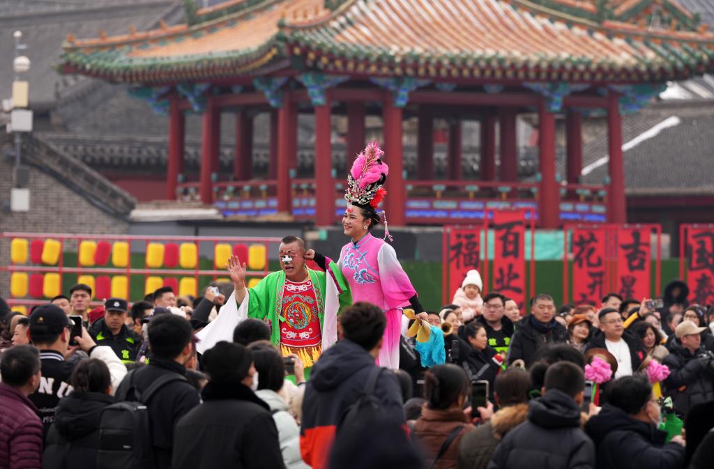 2024年2月24日,演员在沈阳故宫的大政殿前广场表演辽宁海城高跷。沈阳故宫连续多年举办“沈阳故宫过大年”大型文化系列活动。