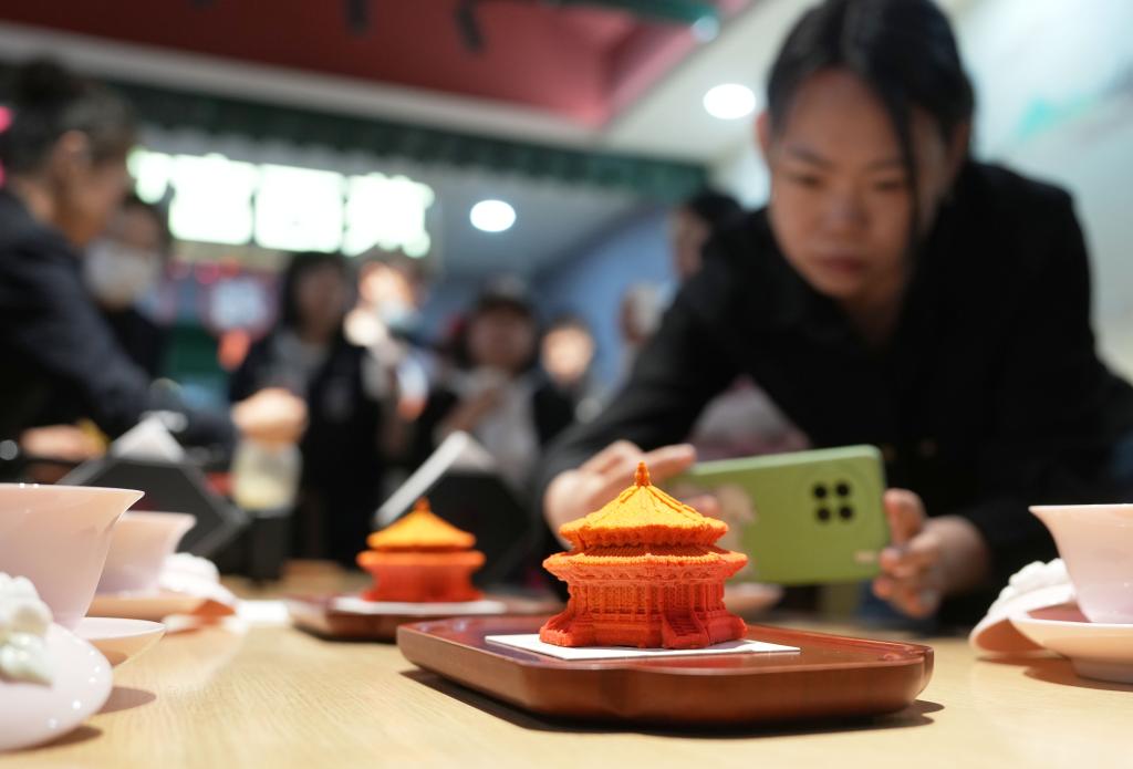 2024年5月10日,游客在沈阳故宫拍摄“大政殿慕斯蛋糕”。