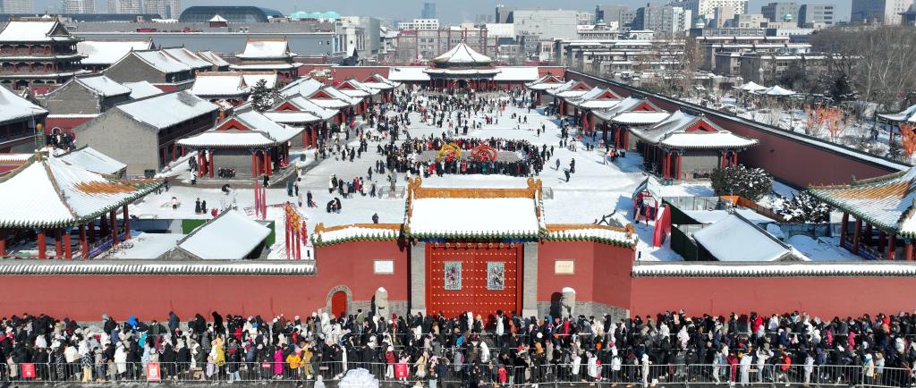 2025年1月31日,游客在沈阳故宫参观(无人机照片)。