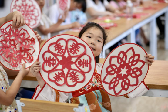 与此同时,书吧内20名市民围坐在一起,在志愿者指导下,拿起剪刀和彩纸,尽情发挥创意,经过巧妙拼贴,一幅幅独具匠心的贴画作品诞生,让传统艺术焕发出全新活力。