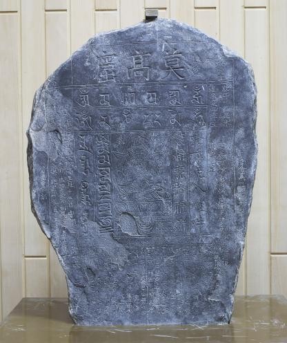 展览分为“敦煌的历史与文化”“敦煌石窟艺术”“敦煌在辽宁”“保护与传承”四个部分。展出的敦煌研究院藏《莫高窟六字真言碑》出土于莫高窟第61窟,为元代著名碑刻。碑石已残,但正面文字基本完好,上额自右往左横刻“莫高窟”三字,碑心刻四臂观音坐像,坐像上方及左右两侧各刻“六字真言”二行,计有梵文、藏文、汉文等六种文字。此碑另刻有功德主、立碑人等82人的题名,均使用汉字,其中有蒙古、汉、党项、回鹘等族人,反映了元代敦煌地区多民族文化间的交往、交流与交融。