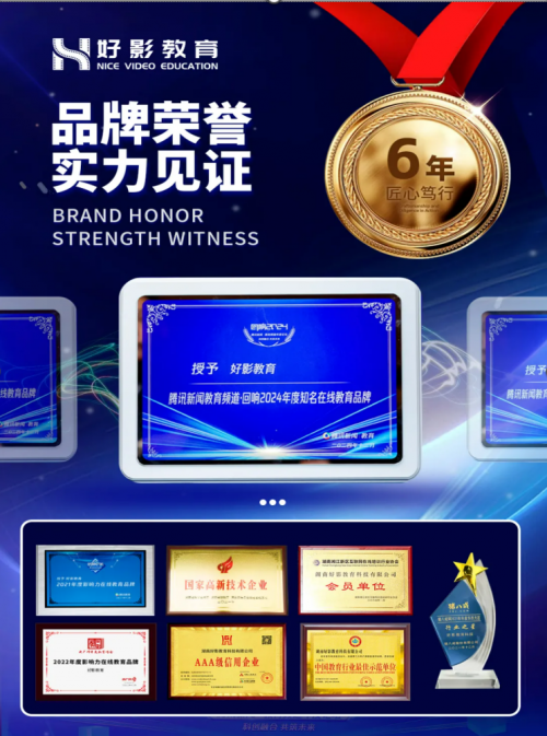 六载征程中,好影教育以“做影视后期在线培训最有温度的品牌”为愿景,在激烈的市场竞争中脱颖而出,斩获了一系列行业权威认可:从“2021年度影响力在线教育品牌”,到入选中国教育行业最佳示范单位、荣获高新技术企业认证,再到荣膺“回响2024年度知名在线教育品牌”...... 这些荣誉是一项项嘉奖,亦是六年以来好影教育自我勉励的一杆杆旗帜。