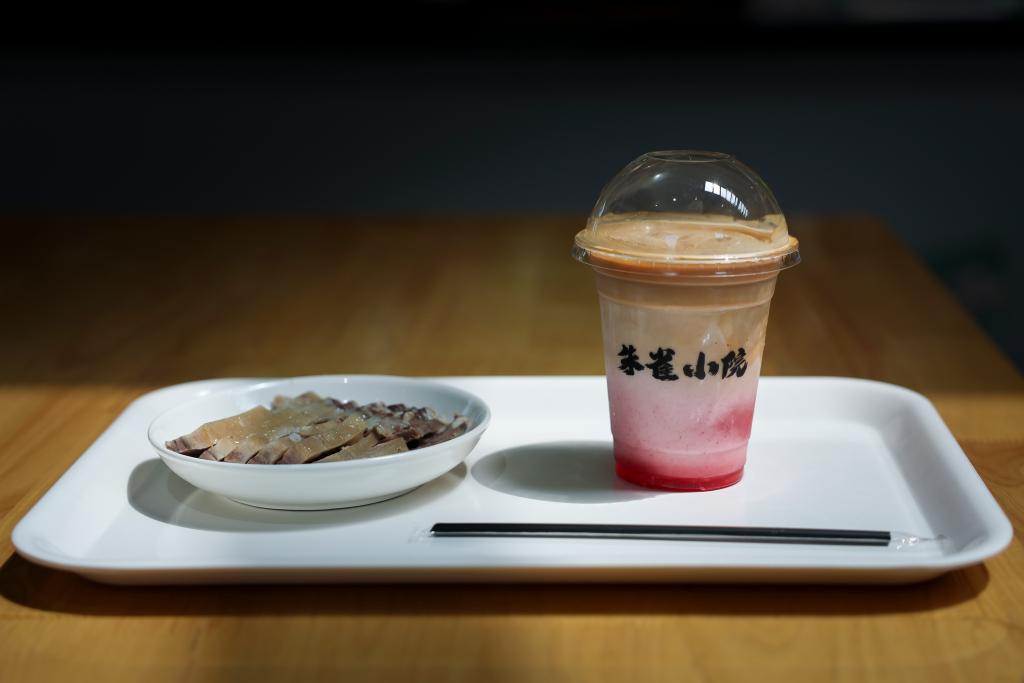 这是5月22日在上海市浦东新区万祥镇朱雀小院拍摄的夏日时令套餐——西瓜拿铁配猪头肉。