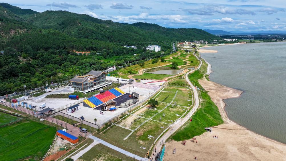 在推进“赣江旅游风光带”建设中,青原区对庐陵湾进行了生态修复,成功将昔日荒芜之地蝶变为江西省“幸福河湖”建设样板。占地1200多亩的庐陵湾生态旅游项目内,生态垂钓示范区、彩色稻田艺术区、沧海乐园等景点星罗棋布。这里以构建赣江中游生态经济圈为目标,全力打造集河湖主题公园、艺术田园水乡村落打卡地、滨江户外运动体验地、特色露营休闲地以及5A级乡村旅游点功能于一体的文旅综合体。其中,由废弃粮库改造而成的粮仓主题设计酒店——观澜民宿,创新“民宿+”发展模式,将非遗体验、艺术创作、会展经济融合,以多元化业态激活乡村旅游新活力,打造特色民宿新标杆。