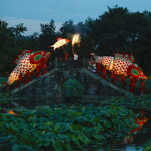 当晚,一场别开生面的鱼灯巡游活动在安徽省黄山市徽州区呈坎古村落热闹上演,一条条惟妙惟肖的徽州鱼灯沿青石板路次第游走,灯影随鼓点上下翻飞,如梦似幻。游客沉浸式参与其中,感受徽州传统民俗的魅力。新华网发(施亚磊 摄)