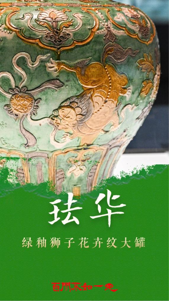 这只珐华绿釉狮子花卉纹大罐