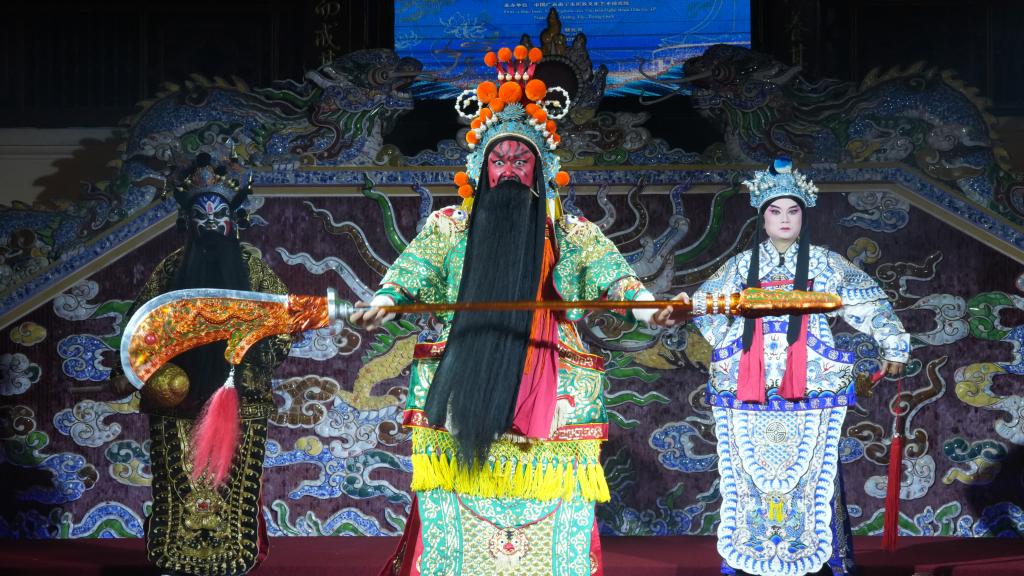 当中国邕剧《华容道》里红脸长髯的关公在越南古都顺化横刀亮相,台下越南观众脱口而出的是洪亮的中文——“好!”近日,在越南顺化皇城的阅是堂剧院,一场精彩的跨语言共鸣正在上演。