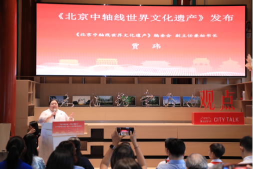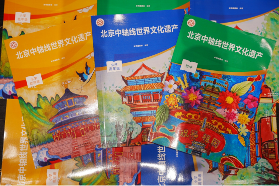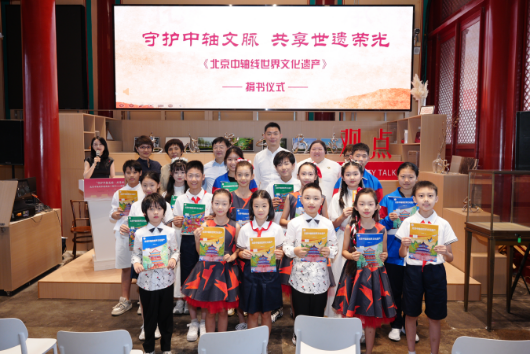 活动现场,首套面向中小学生的《北京中轴线世界文化遗产》三册书本正式亮相。有关部门领导、《北京中轴线世界文化遗产》编委会主任梅松、副主任兼秘书长贾玮等编委与北京出版集团总编辑赵彤共同将新书递到学生手中。