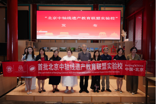 北京中轴线文化传承的星火在校园点燃。北京中轴线基金会、北京教育科学研究院、北京科技教育促进会三家机构联合发布首批“北京中轴线遗产教育联盟实验校”。北京小学金中都分校书记胡晓娟与第五中学分校主任郦雅作为校方代表,和现场嘉宾一道展开了象征使命的联盟横幅。