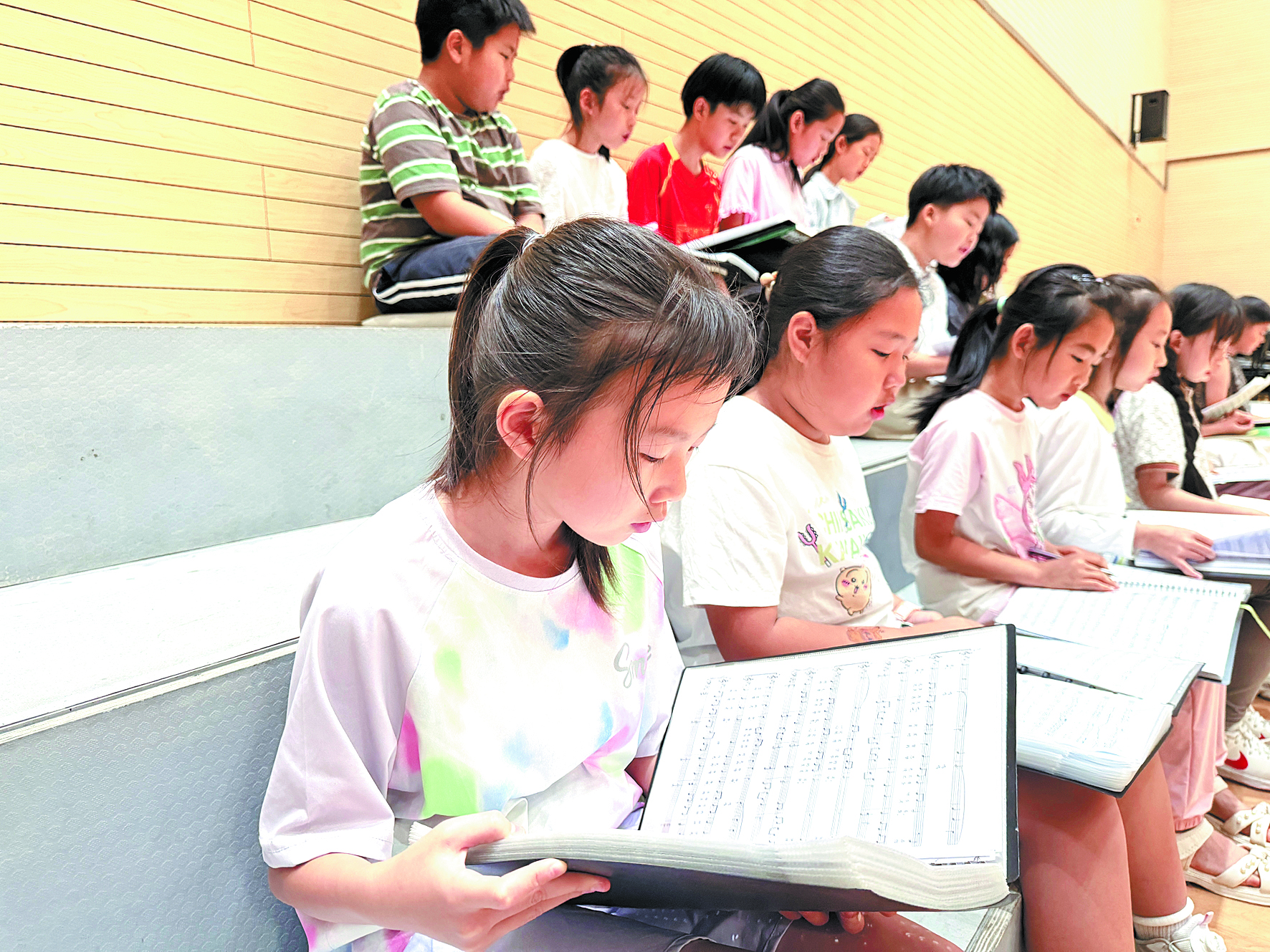 滨州市文化馆等单位结合少年儿童的心理特点,将夏令营别出心裁地设计成“音乐的魔法城堡”,通过“声音小精灵”“音准特工”“节奏冒险家”等趣味环节,让孩子们在游戏和欢乐中感受音乐魅力。从基础的呼吸控制、发声练习到多声部融合排练,孩子们在老师的引导下认真学习,不仅拓宽了音乐视野,也领悟到团队协作的重要性,不断加深对合唱艺术的理解与热爱。比如,今年8岁的杨欣怡,通过加入滨州童声合唱团、参加夏令营活动,不仅掌握了科学的发声技巧,改善了“大白嗓”,性格也变得更加自信和开朗。