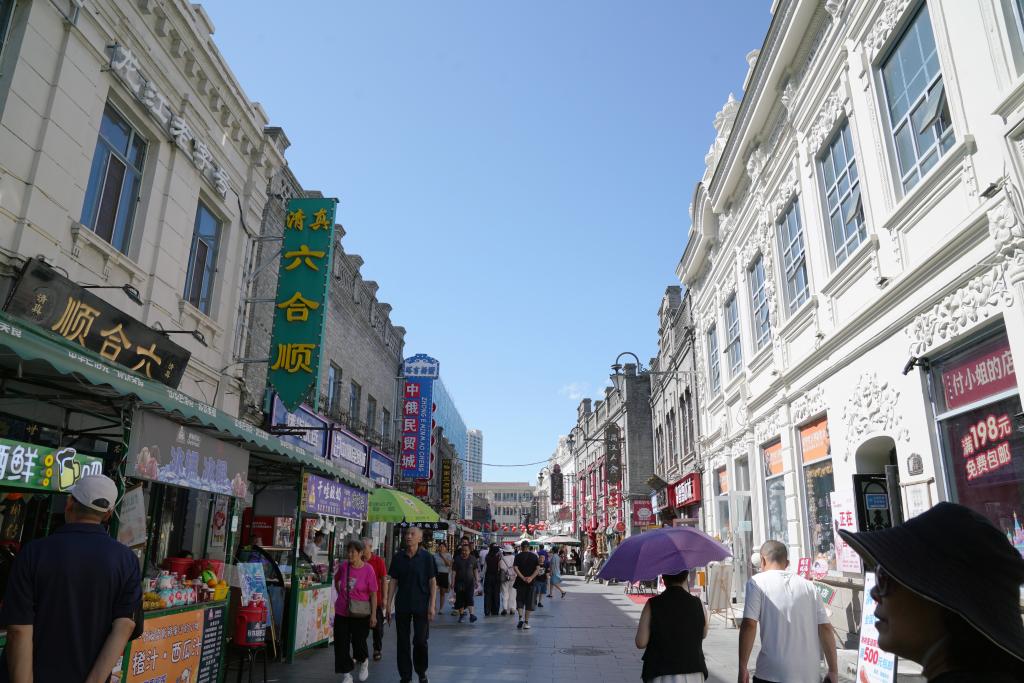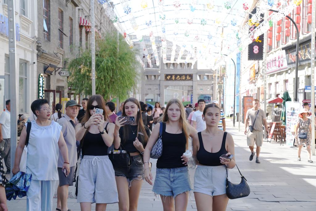 人们在哈尔滨中华巴洛克历史文化街区游览(7月30日摄)。新华社记者 王松 摄