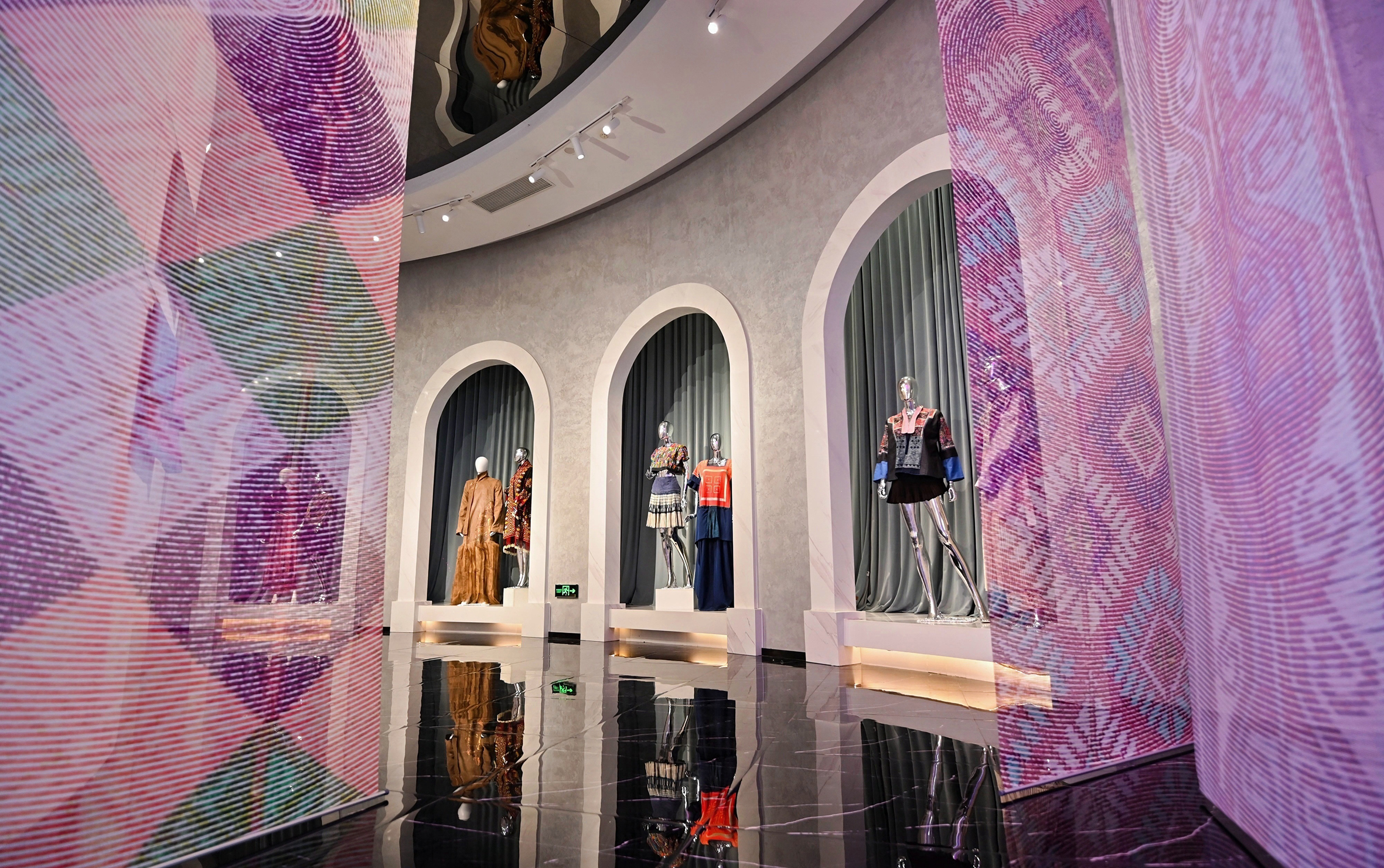 主题展分为两个部分:第一部分展出了来自中国、墨西哥、尼泊尔等多个不同民族的36件民族服饰收藏品;第二部分展出了10余位当代设计师的20余套设计作品。展览现场,传统工艺与当代设计相互碰撞,呈现民族图案经久不衰的生命力,也为区域文化产业注入新思路与新动能。