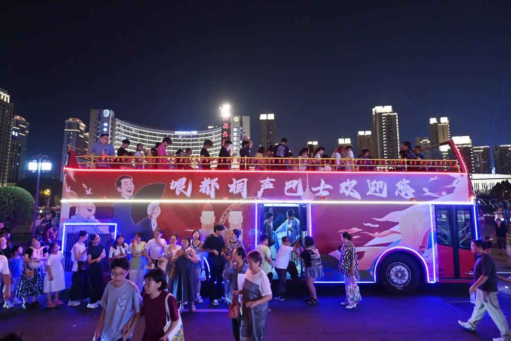 新华社天津8月17日电(记者包庆龄)晚上七点,天津古文化街戏楼前,人们三三两两聚在一起交谈着,他们在等一辆特别的巴士到站,那就是天津的移动相声剧场——“相声巴士”。