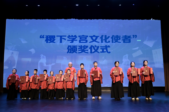 首批12名来自淄博当地中小学的学生被授予了“稷下学宫文化传承使者”称号。主办方代表,北京中视融媒文化传播有限公司董事长崔永进表示,“希望通过‘荣誉+奖励’的方式,激励孩子们主动走近历史,成为传统文化的讲述者和传播者,让稷下学宫‘百家争鸣、兼容并包’的精神在新时代焕发活力。同时也希望孩子们带着这份荣誉与期许,以今日为起点,积跬步以至千里,终有一天,都能成为那‘一飞冲天’的雏鹰,‘一鸣惊人’的栋梁”。