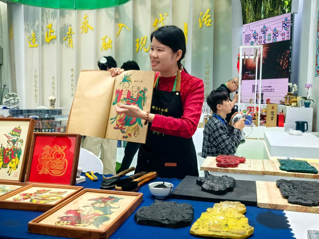 “要让非遗‘潮’起来。”国家级非物质文化遗产代表性项目佛山木版年画市级代表性传承人刘钟萍的作品也引人注目。这位“80后”致力于将佛山木版年画以青春的语言重新演绎,在“解忧年画铺”展位推出“逢考必过”“脱单神器”等符合年轻人需求的木版年画作品。