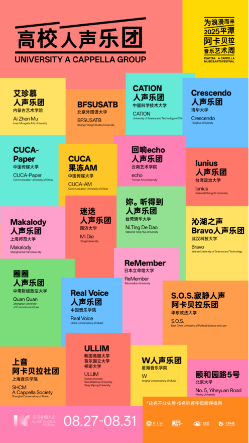 魅力人声,齐聚平潭。2025平潭海岛合唱大会将于8月27日至31日在福建平潭举办。本届大会将汇聚超40支人声团队参与,涵盖了专业阿卡贝拉人声乐团、高校阿卡贝拉团体、传统无伴奏合唱团、乐龄合唱团、儿童人声团队及新声代阿卡贝拉乐团等多元阵容。