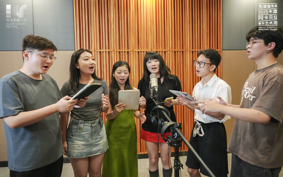 “海岛留声”阿卡贝拉录音工坊录制现场。主办方供图