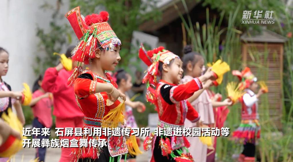发源于云南省红河哈尼族彝族自治州石屏县的彝族烟盒舞,2006年被列入第一批国家级非物质文化遗产代表性项目名录。