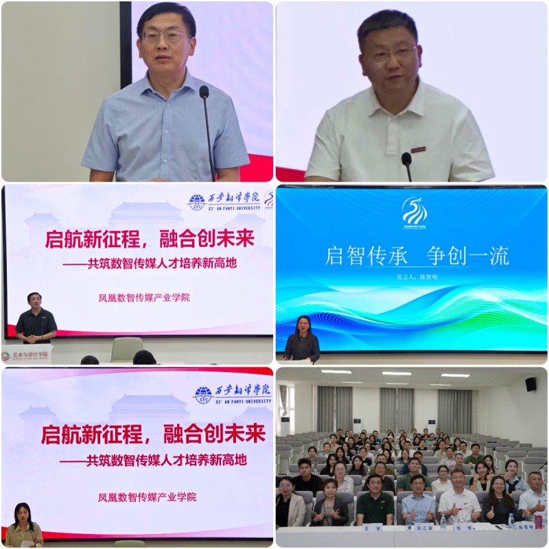 2025年9月12日,西安翻译学院与凤凰数媒(北京)科技有限公司共建的“凤凰数智传媒产业学院”揭牌仪式于西校区1号楼隆重举行。西安翻译学院校长姚书志、副校长武忠远、王霖、张恒,党委宣传部、教务处、科研处等职能部门负责人、凤凰数智传媒产业学院负责人以及凤凰产教融合集团总裁刘江波、教学总监曲芳等一行人共同出席,见证这一深化校企协同、共筑数智传媒教育新生态的重要时刻。