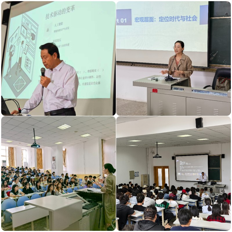 当日下午,学院为2025级新生精心组织“数智传媒新生第一课”系列学术讲座。数字媒体艺术系与视觉传达设计系邀请中国传媒大学动画与数字艺术学院教授张歌东带来《创意星河:开启数智时代媒体艺术与设计新征程》专题报告。张教授从AI技术重塑影像工业、游戏动画及广告创意生态等多个维度,阐释了审美判断与人文素养在数智时代的核心价值,为学子指明了未来传媒艺术的发展方向。同一时间,播音与主持艺术系及网络与新媒体专业新生听取了西安交通大学教授赵一菲题为《看见“势”与路:传媒新生的大学指南》的讲座。赵教授从宏观媒介环境变迁切入,强调播音专业人才需夯实“舞台力”、拥抱“IP化”,在短视频、虚拟主播等新形态不断涌现的背景下,持续强化专业基本功与跨界学习能力,成为兼具人文底蕴与技术适应力的复合型传媒人。