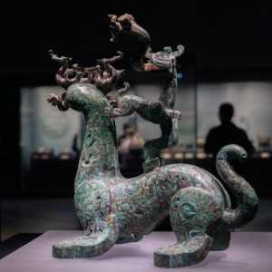 来到长江流域的青铜时代,神秘浪漫与灵动多元的气息扑面而来,奇丽灵动的长江气质熔铸于繁复精巧的青铜器中。25件承载着上游巴蜀文化、中游曾楚文化和下游吴越文化的精美文物,不仅呈现了长江全域青铜文明的辉煌历史,更是长江文明与黄河文明“对话”、交融的见证。