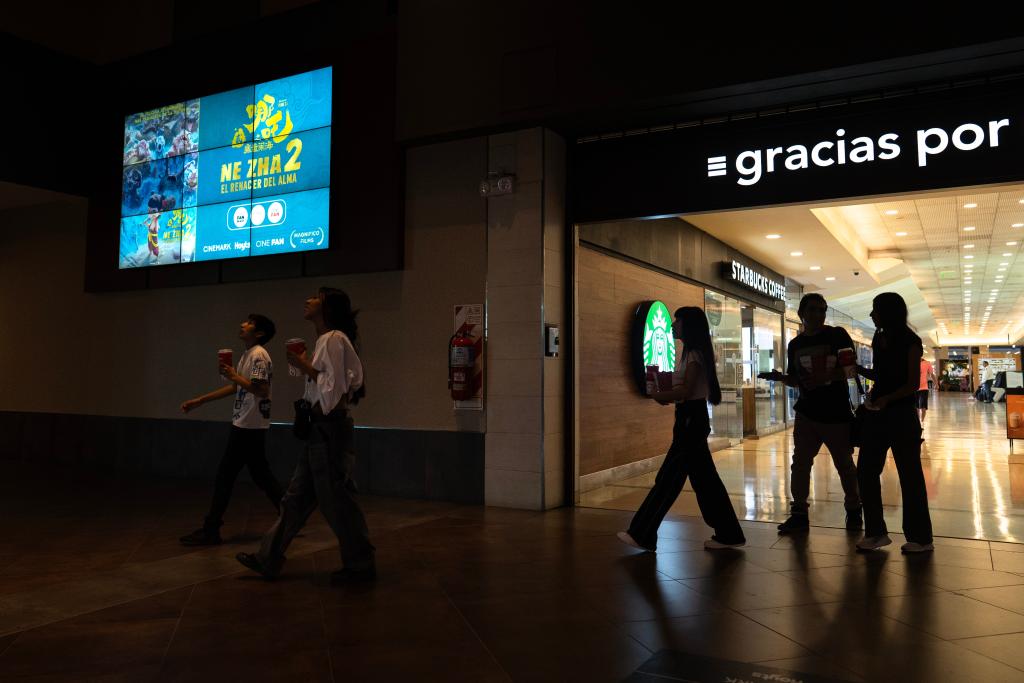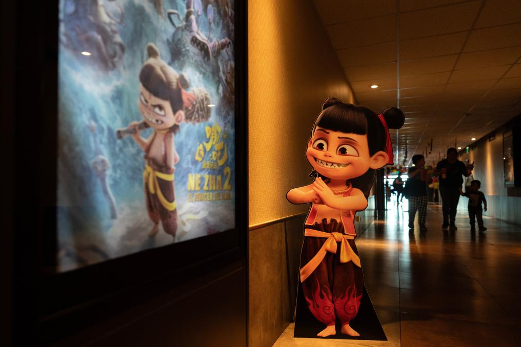 10月2日,人们在阿根廷首都布宜诺斯艾利斯的影院准备走进《哪吒2》放映厅。