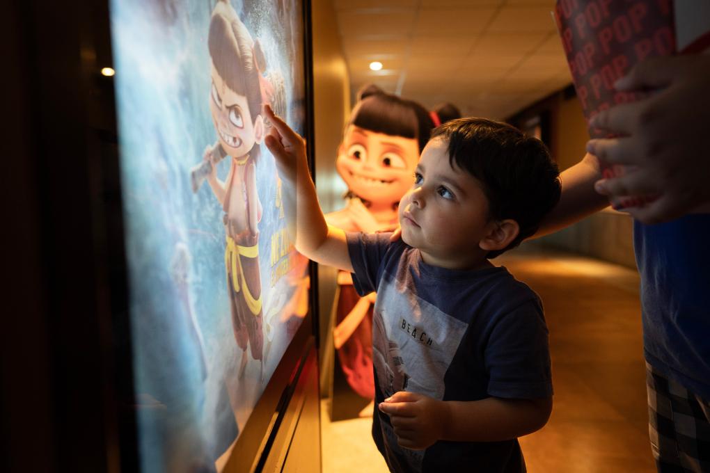 10月2日,一名男孩在阿根廷首都布宜诺斯艾利斯的影院观看《哪吒2》海报。