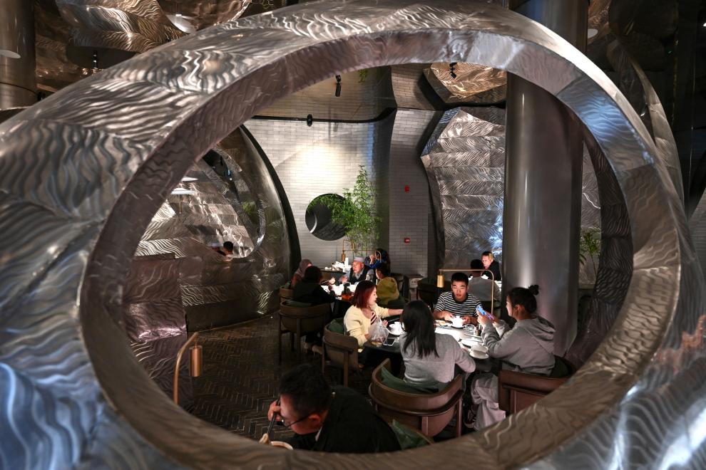 在食名轩早茶店,顾客不仅能品尝花样百出的美食,还能亲自配制属于自己的八宝茶、观看体验拉面制作、欣赏报菜名贯口表演。“我们想让顾客亲身体会早茶的渊源、抓茶的快乐、拉面的精巧,在互动中获得更多情绪价值。”这家早茶店经理吴涛说。